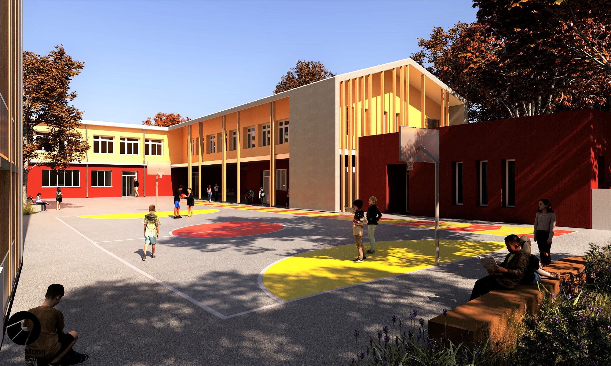 La rénovation du groupe scolaire Alice-Ball dans le quartier de Cusset a commencé fin 2025 pour une livraison 2027.